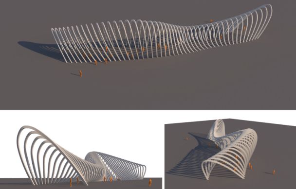 本次中標設計范圍為公園紅線范圍內的所有鋼結構構筑物(包括紅線外的延伸部分)及幕墻,涉及到鋼結構涼亭、鋼結構雨棚、鋼結構連廊、海堤鋼結構構筑物、摩天輪廣場構筑物、游客服務中心入口構筑物、天幕廣場構筑物、遮雨涼亭、景觀橋(鋼結構部分)等鋼結構構筑物設計和游客服務中心(含附屬樓)的幕墻設計等18個子項設計內容,投影面積約 2萬平方米。鋼結構構筑物最大跨度達40米,所有項目均為曲面異型結構,造型新穎,設計難度大,因此投標采用了邀請投標的形式。
