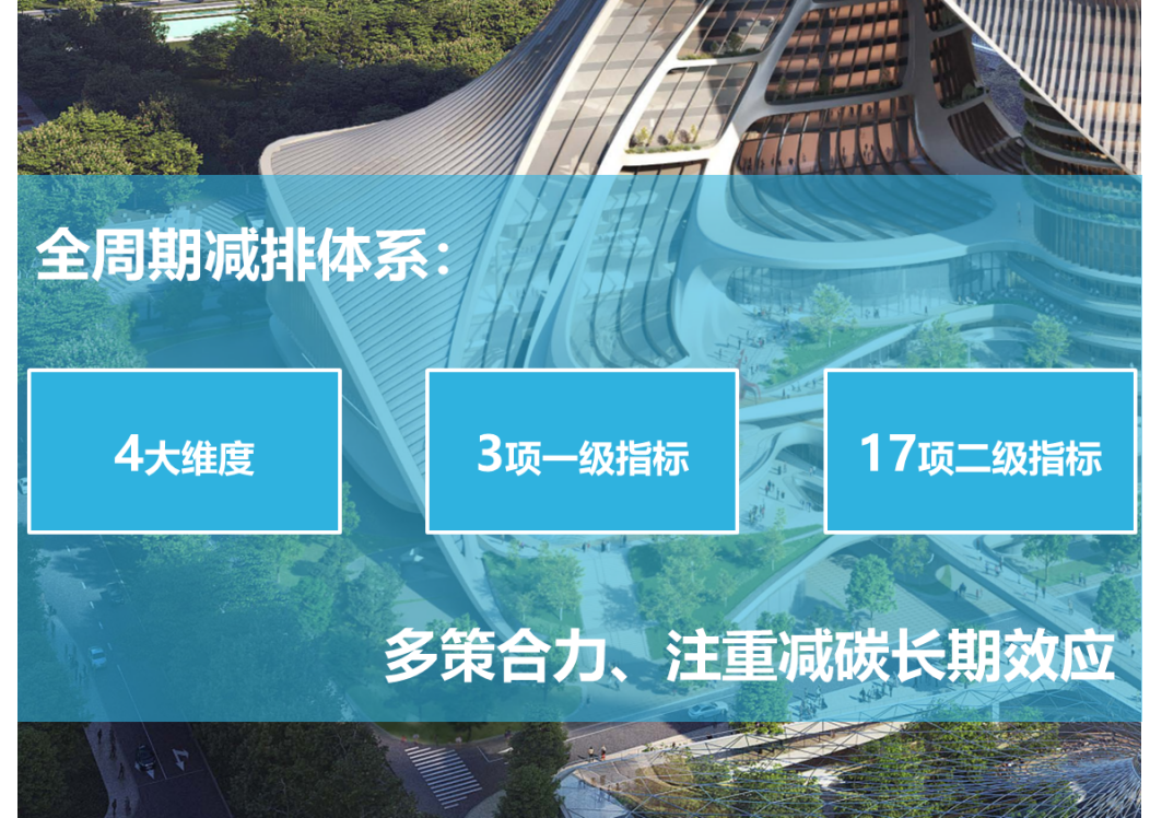?為實現真正的低碳目標,中國建研院深圳分公司幫助項目建設單位共同梳理主流標準體系和核心政策要求,圍繞低碳管理、低碳建造、低碳運行、碳中和四大維度,精心打造了一套包含3項一級先進指標、17項二級先進指標的低碳減排指標體系。該體系覆蓋超高層項目開發的全周期,從規劃設計時的碳排放預評估,到施工建造過程中的低碳建材選用、建造碳排放監測,再到運營階段的低碳運維建議,每一個環節都有明確的量化或定性要求。