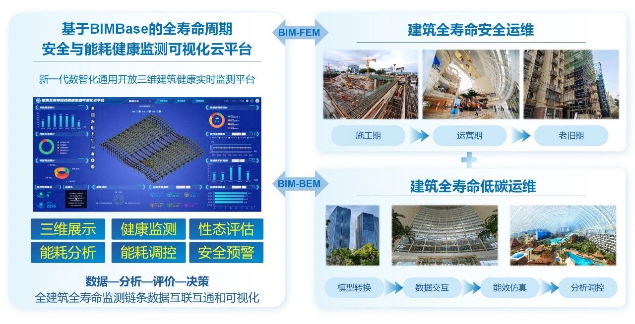?“建筑安全與能耗數字化集成監測技術與平臺”是中國建研院“建筑領域數字化技術應用與示范”專項領域的核心技術成果之一,依托中國建研院完全自主研發的BIMBase云平臺構建,融合建筑結構安全監測、建筑能效仿真與調控等功能模塊,形成了建筑安全與能耗數字化集成的成套關鍵技術體系,實現監測-預警-調控全流程閉環管理。該成果適用于各類新建及既有建筑的結構健康監測與預警,同時具備建筑節能系統的數字化監控、能耗監測與管理能力,可拓展應用于陸地與海洋風電、核電、光伏等新能源設施,以及橋梁、隧道等建設工程領域的安全運維。