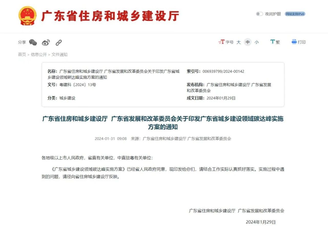 廣東省住房和城鄉建設廳 廣東省發展和改革委員會關于印發廣東省城鄉建設領域碳達峰實施方案的通知