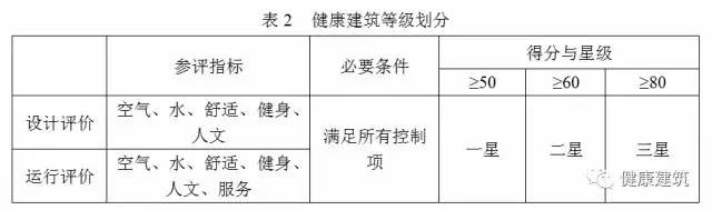 第3.2.8條規(guī)定了健康建筑的等級劃分。為使健康建筑的健康性能更為直觀的表現(xiàn)出來,《標(biāo)準(zhǔn)》對健康建筑的健康性能進行了等級劃分,詳見表2